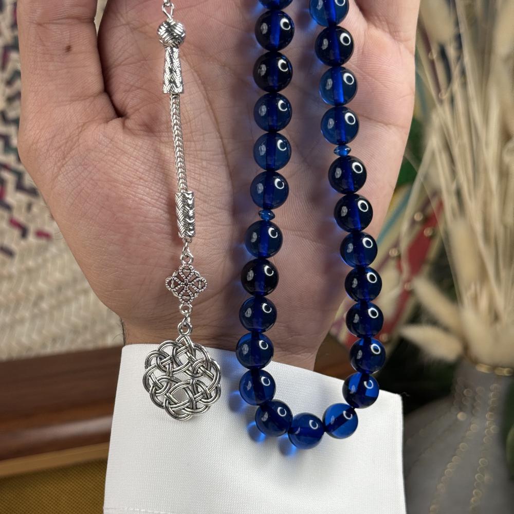 الخامة مايسمى بالبكلايت خفيفة الوزن مصممة للاستخدام اليومي، تتميز بتصميم مريح وأنيق و عصري ، عليها طربزونة معدنية مصنوعة يدوياً مما يعطي السبحة جمال وفخامة وجمال