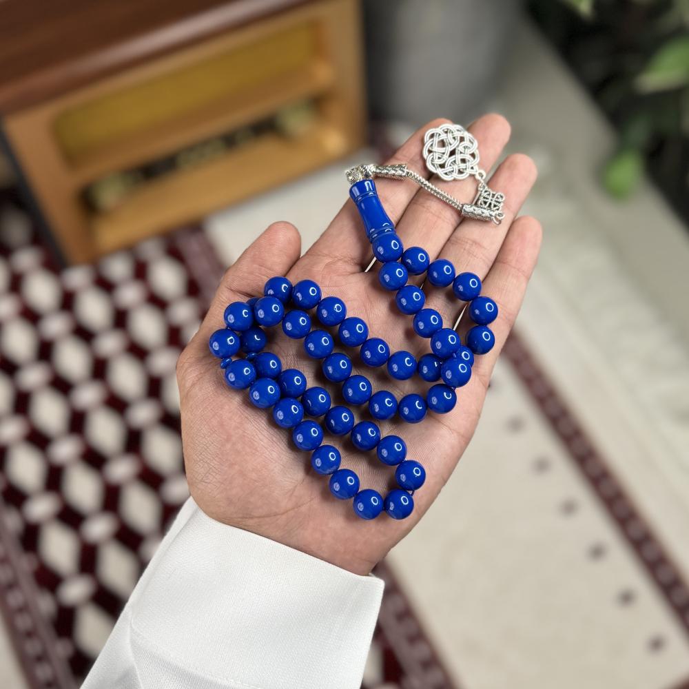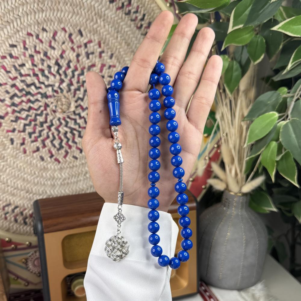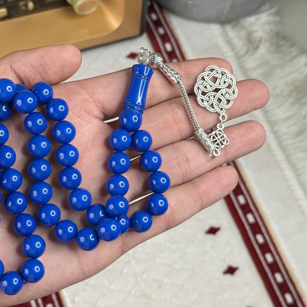 الخامة مايسمى بالبكلايت خفيفة الوزن مصممة للاستخدام اليومي، تتميز بتصميم مريح وأنيق و عصري ، عليها طربزونة معدنية مصنوعة يدوياً مما يعطي السبحة جمال وفخامة وجمال