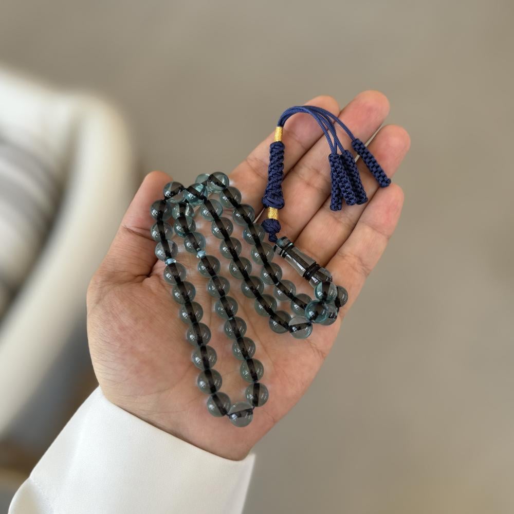 الخامة مايسمى بالبكلايت خفيفة الوزن مصممة للاستخدام اليومي، تتميز بتصميم مريح وأنيق، عليها كركوشة حياكة يدوية مما يعطي السبحة جمال وفخامة.