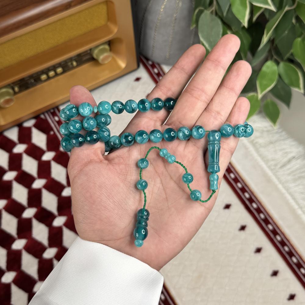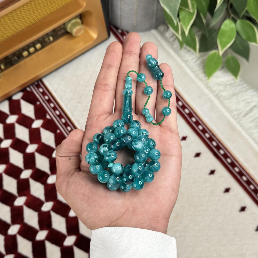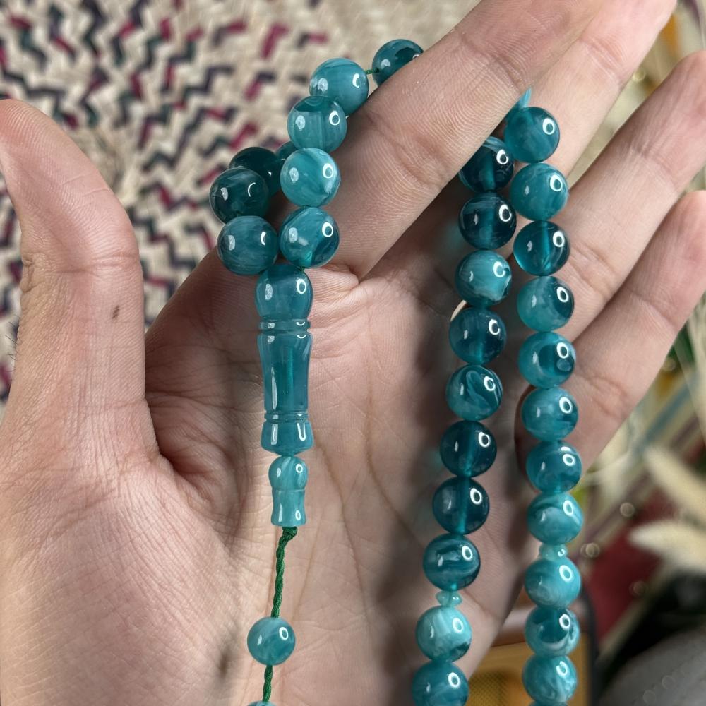 الخامة مايسمى بالبكلايت خفيفة الوزن مصممة للاستخدام اليومي، تتميز بتصميم مريح وأنيق، عليها تمليكة من نفس خامة المسباح يعطي جمال وفخامة.