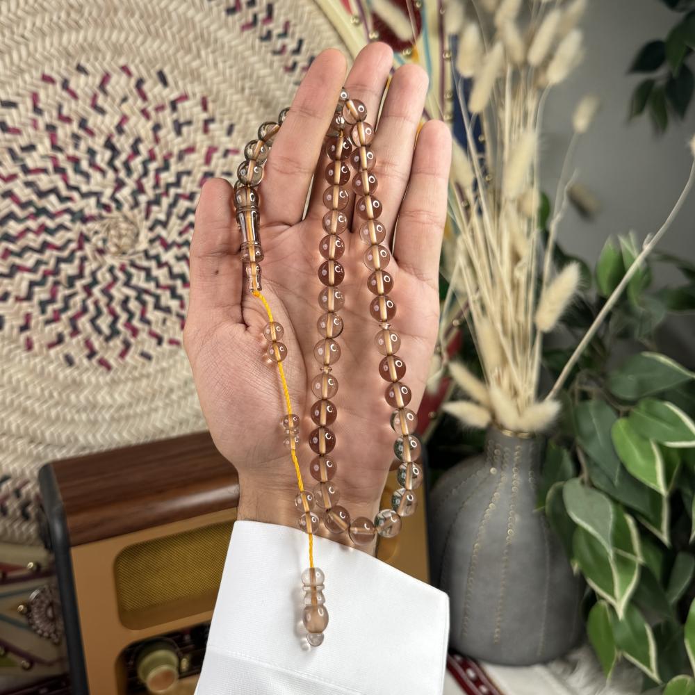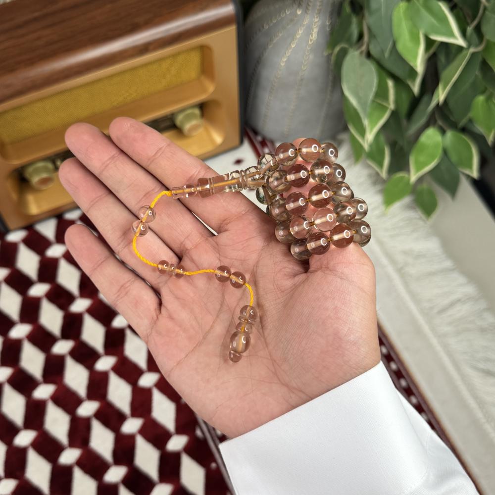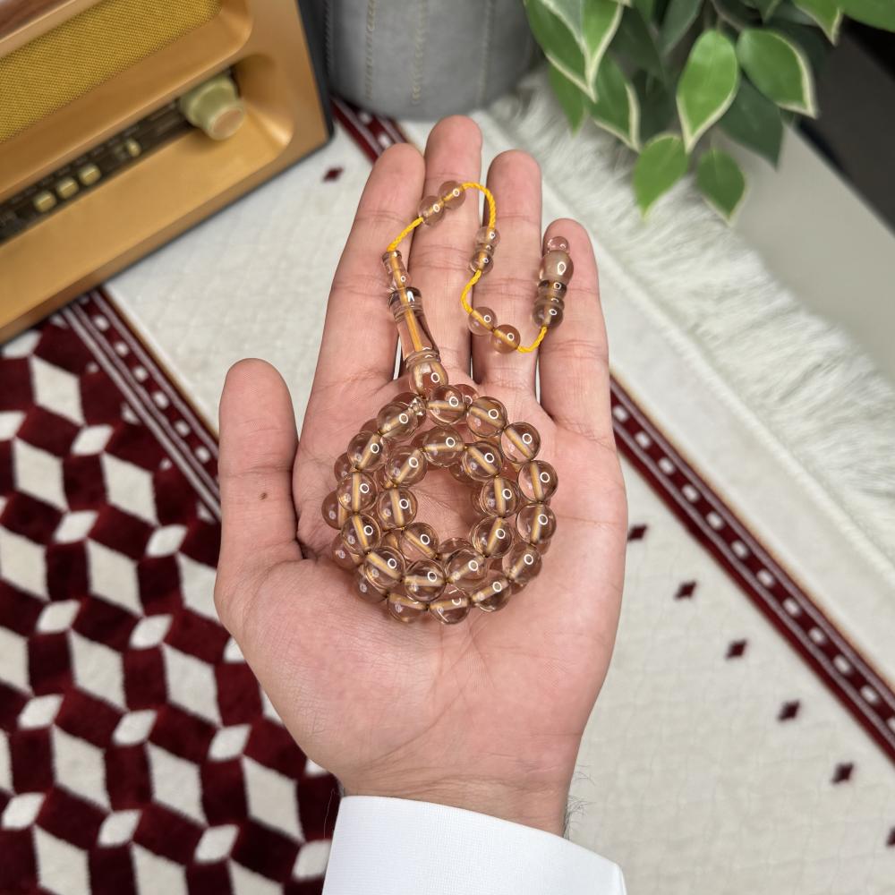 الخامة مايسمى بالبكلايت خفيفة الوزن مصممة للاستخدام اليومي، تتميز بتصميم مريح وأنيق، عليها تمليكة من نفس خامة المسباح يعطي جمال وفخامة.