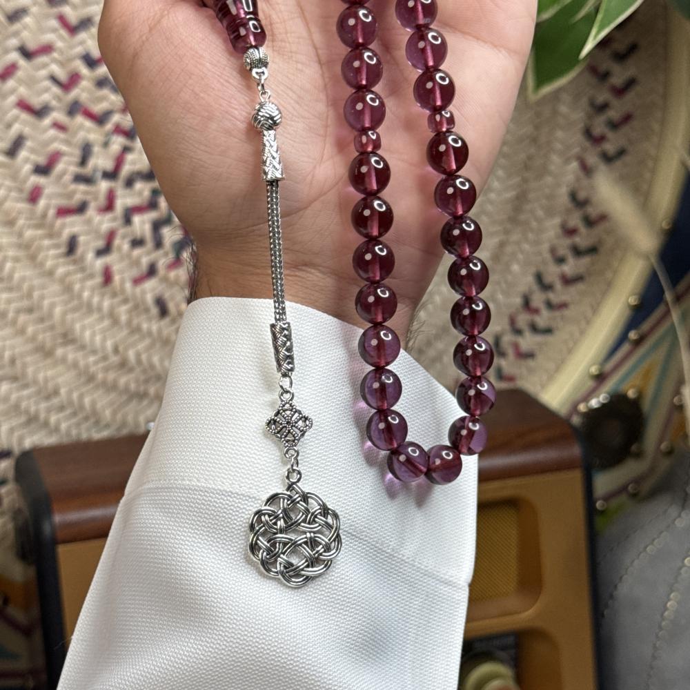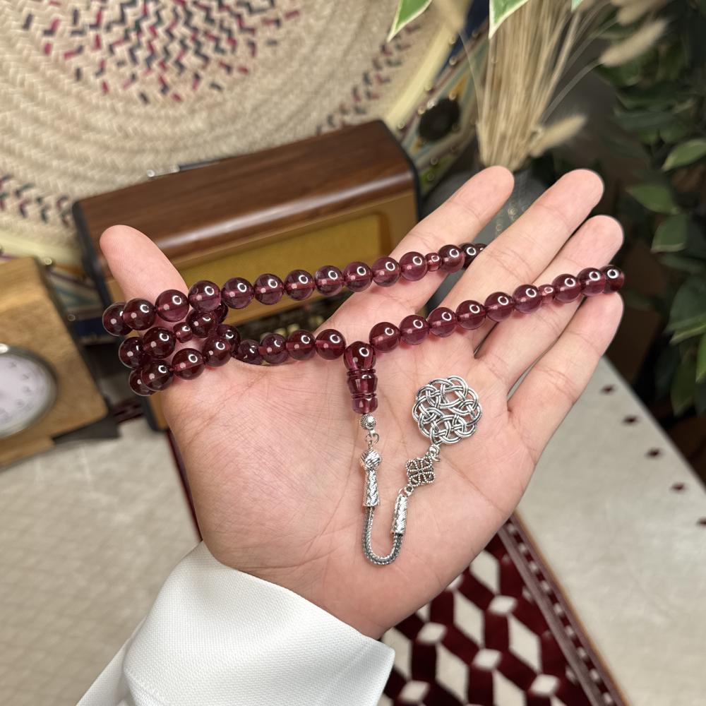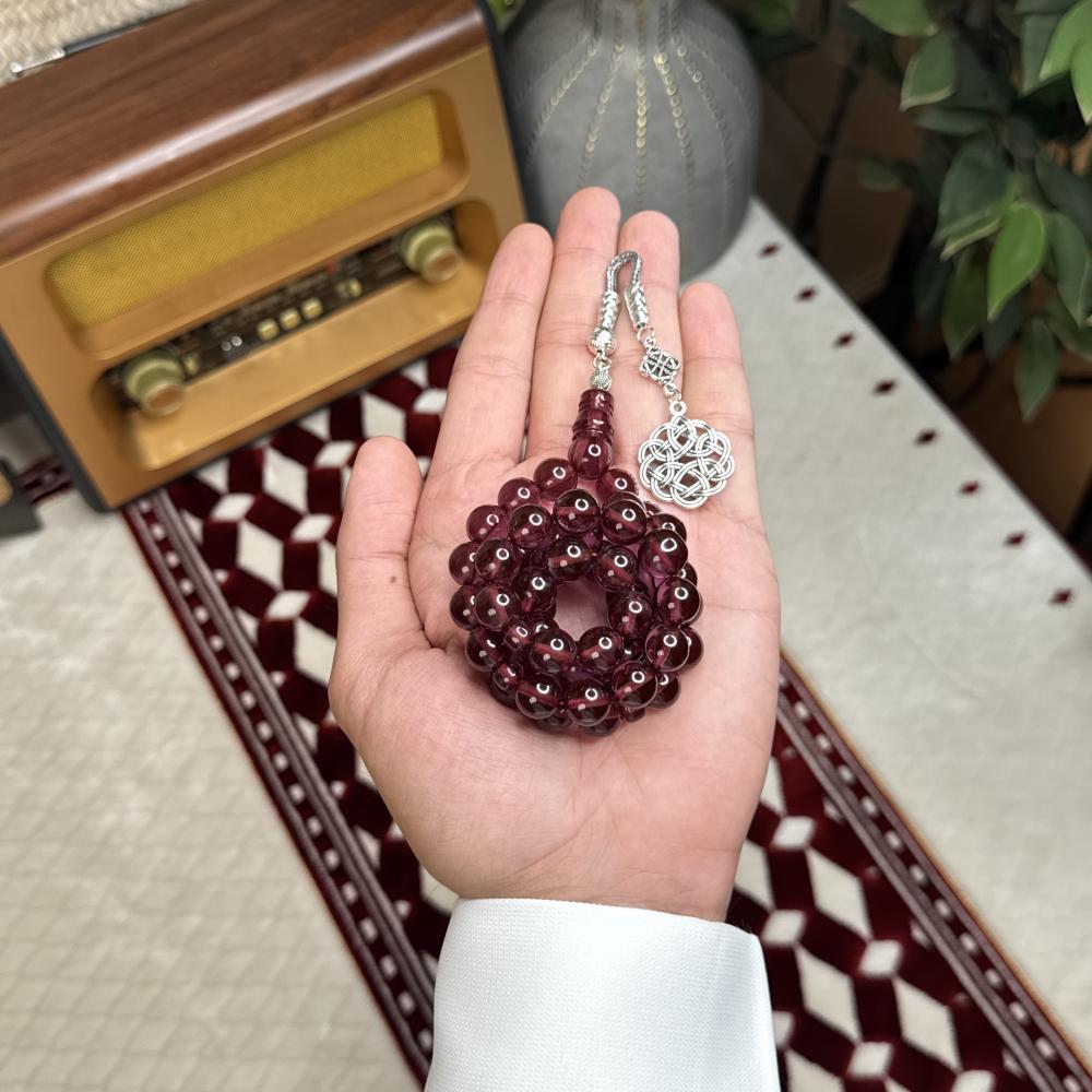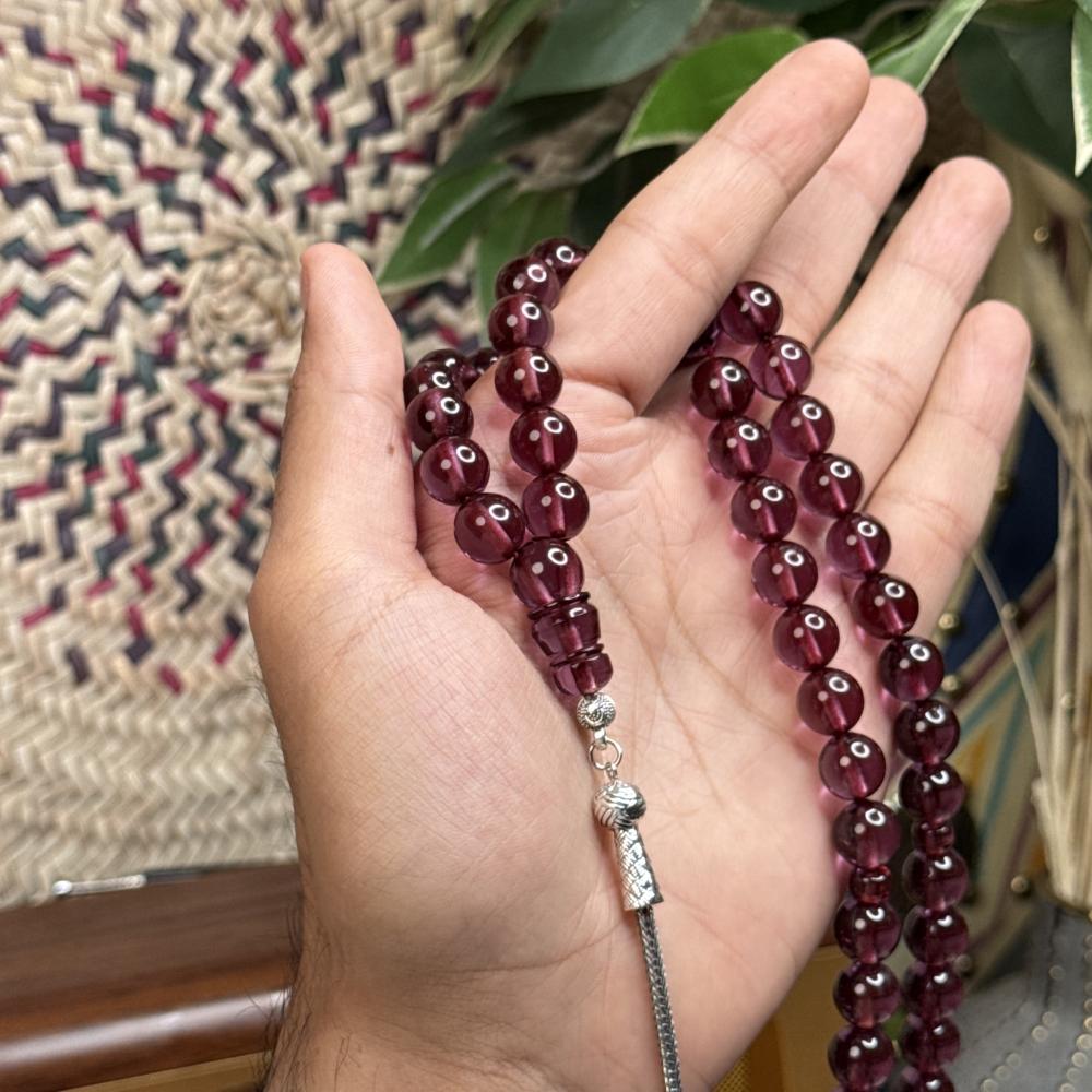 سبحة زعفرانية تتميز بخامة مايسمى بالزعفرانية خفيفة الوزن مصممة للاستخدام اليومي، تتميز بتصميم مريح وأنيق، عليها طربزونة معدنية مما يعطي السبحة جمال وفخامة.
