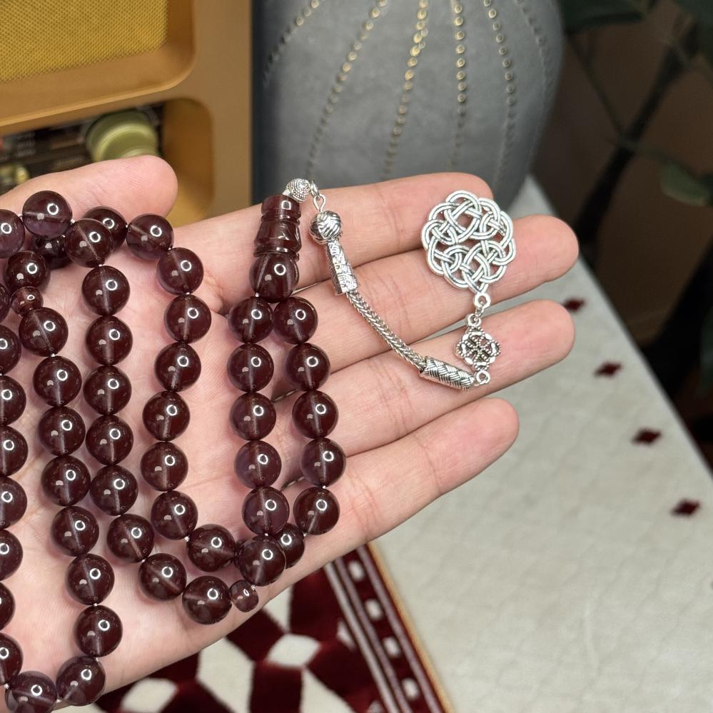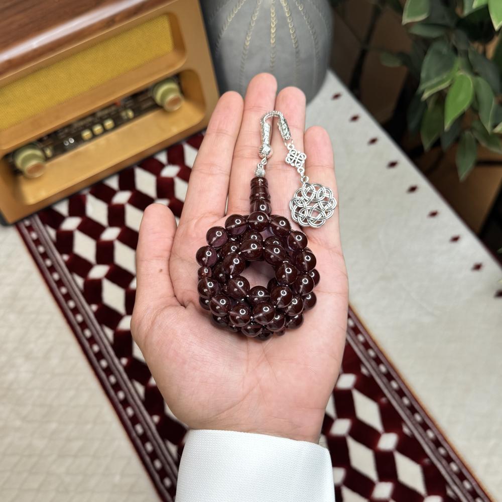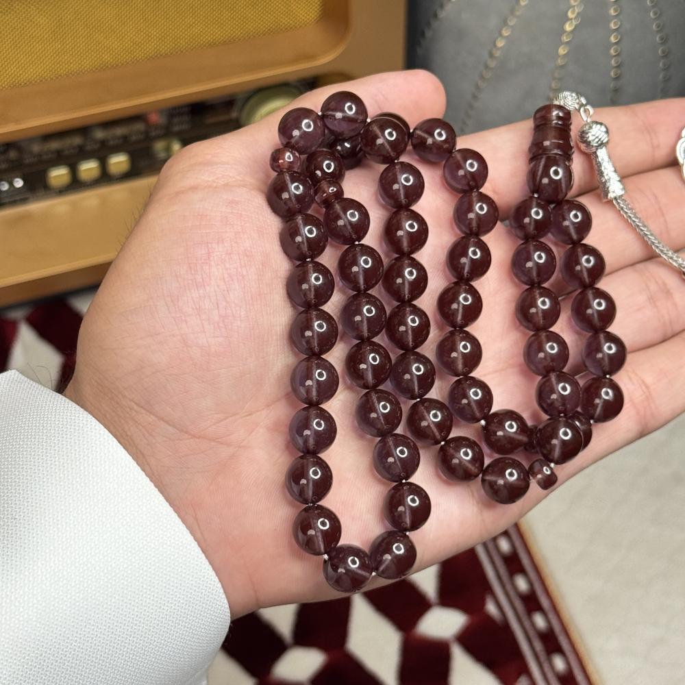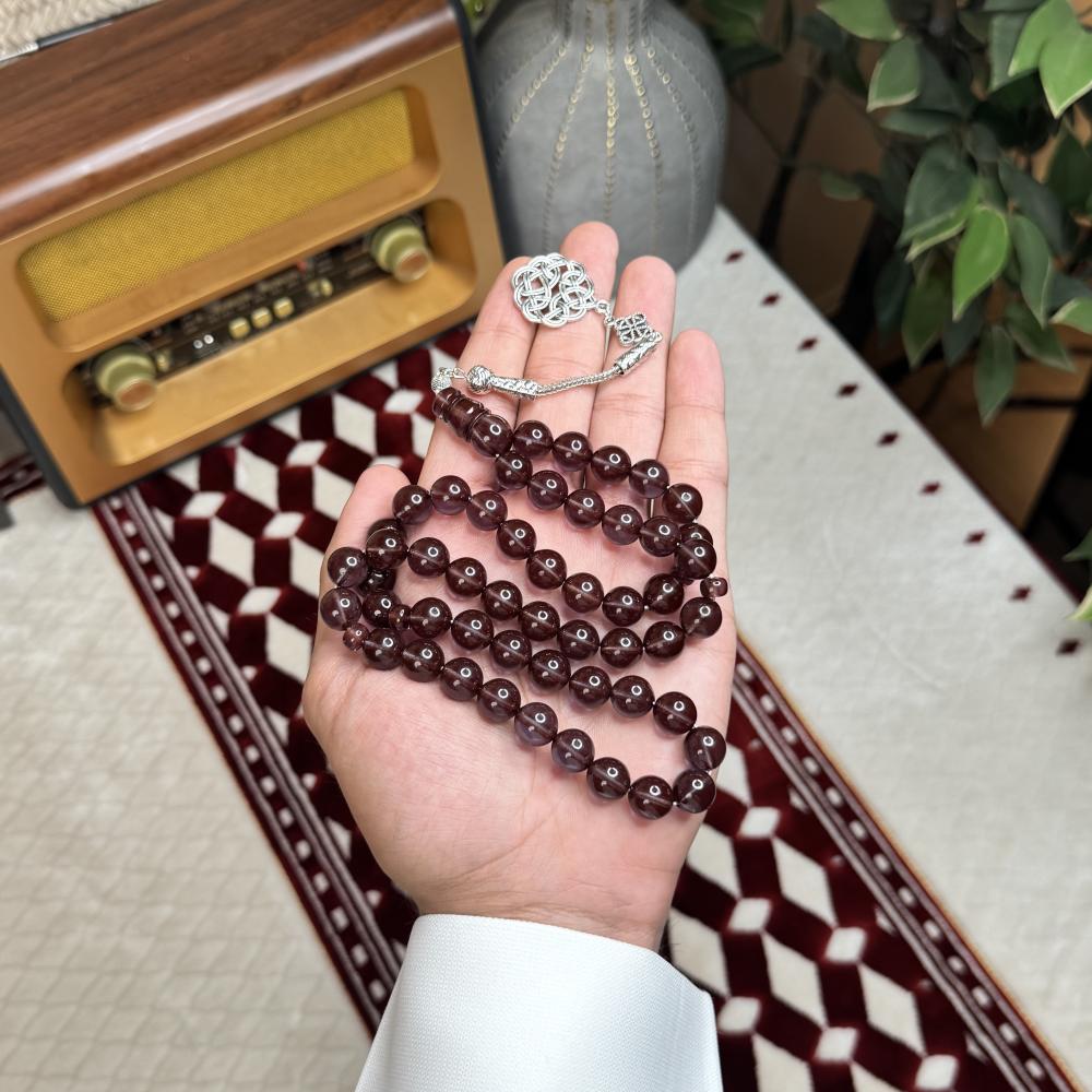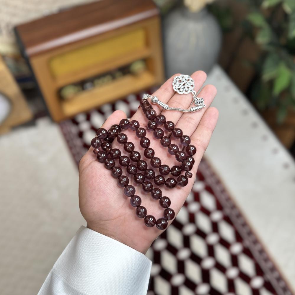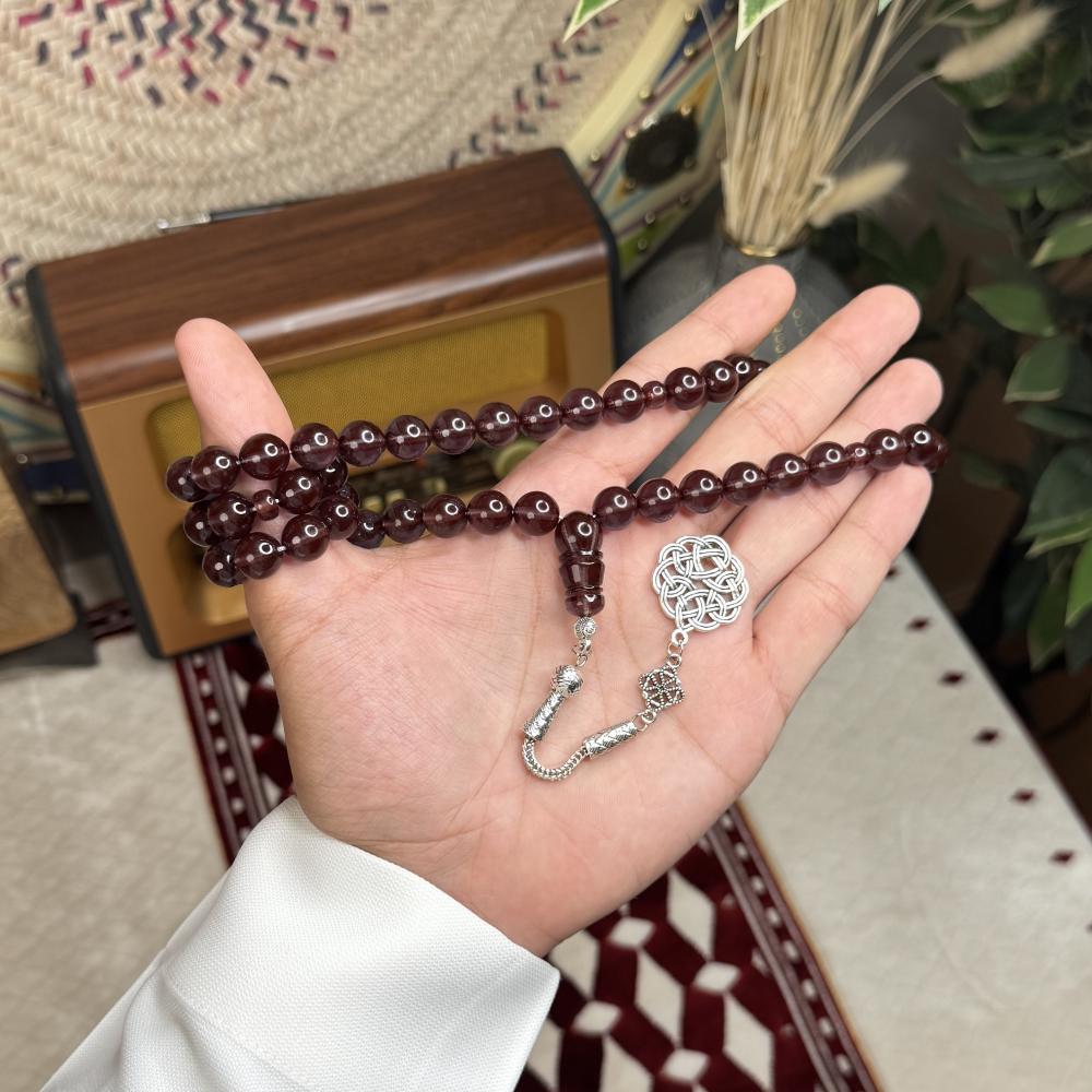 سبحة زعفرانية تتميز بخامة مايسمى بالزعفرانية خفيفة الوزن مصممة للاستخدام اليومي، تتميز بتصميم مريح وأنيق، عليها طربزونة معدنية مما يعطي السبحة جمال وفخامة.