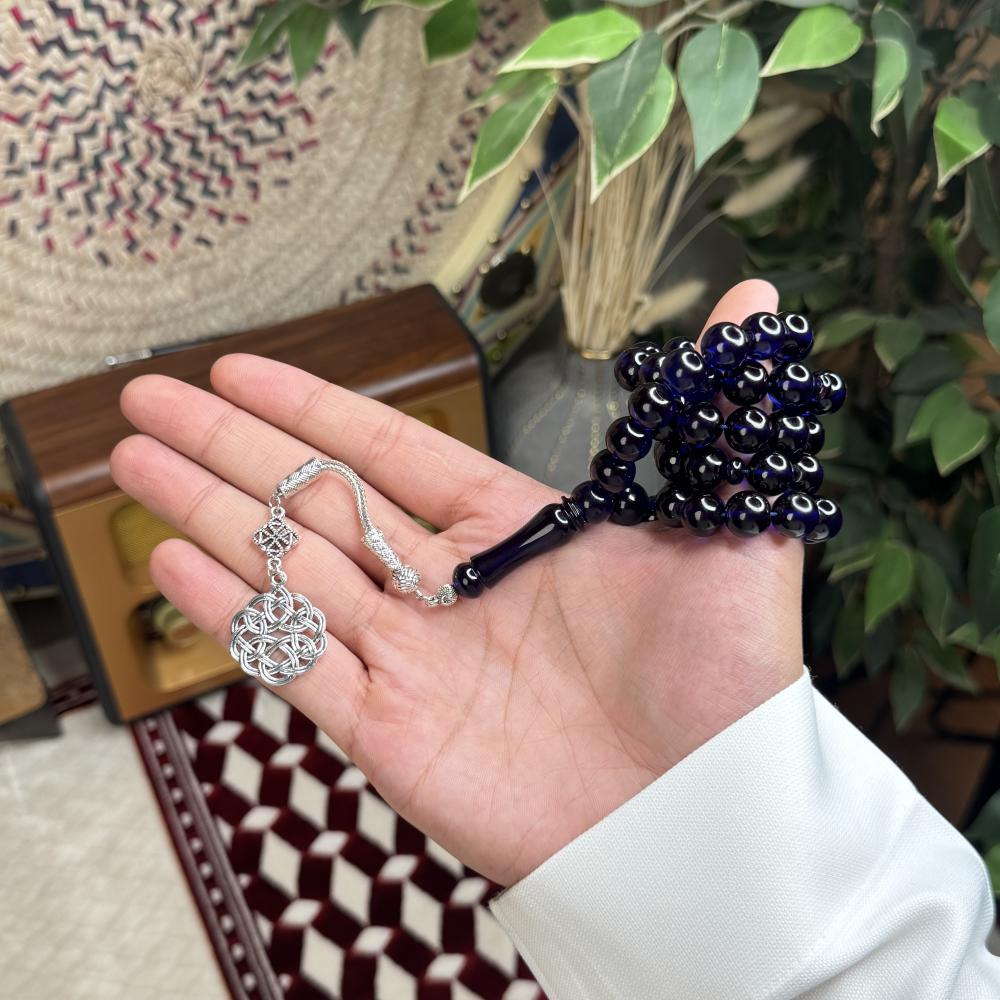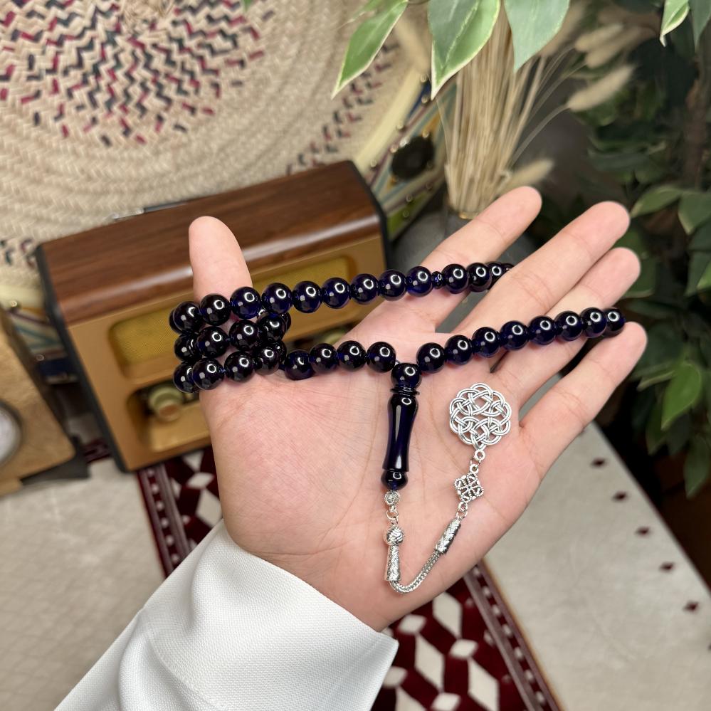 سبحة زعفرانية تتميز بخامة مايسمى بالزعفرانية خفيفة الوزن مصممة للاستخدام اليومي، تتميز بتصميم مريح وأنيق، عليها طربزونة معدنية مما يعطي السبحة جمال وفخامة.