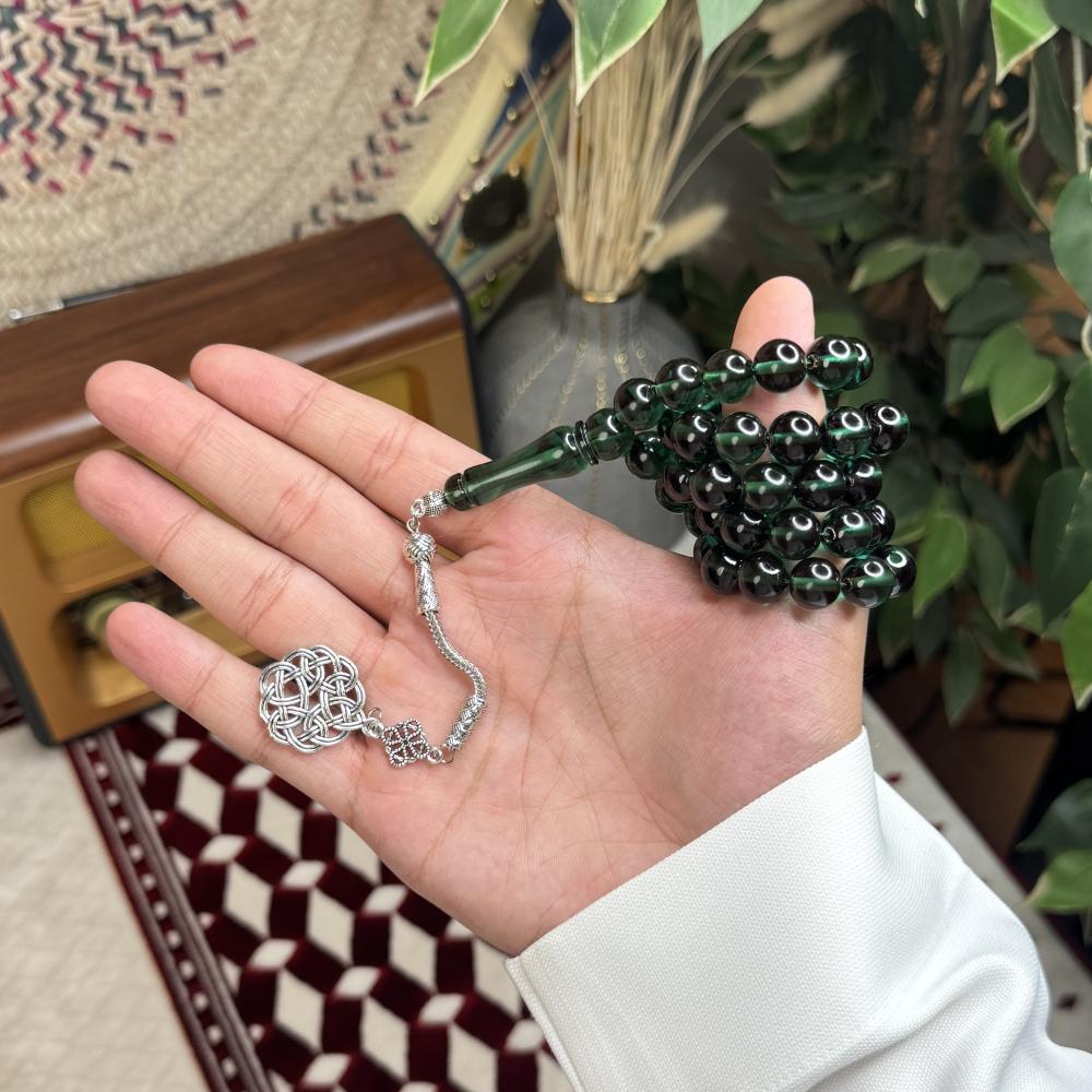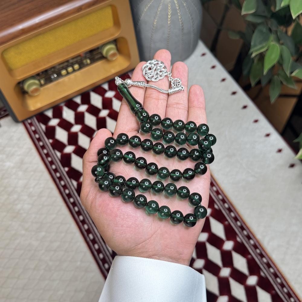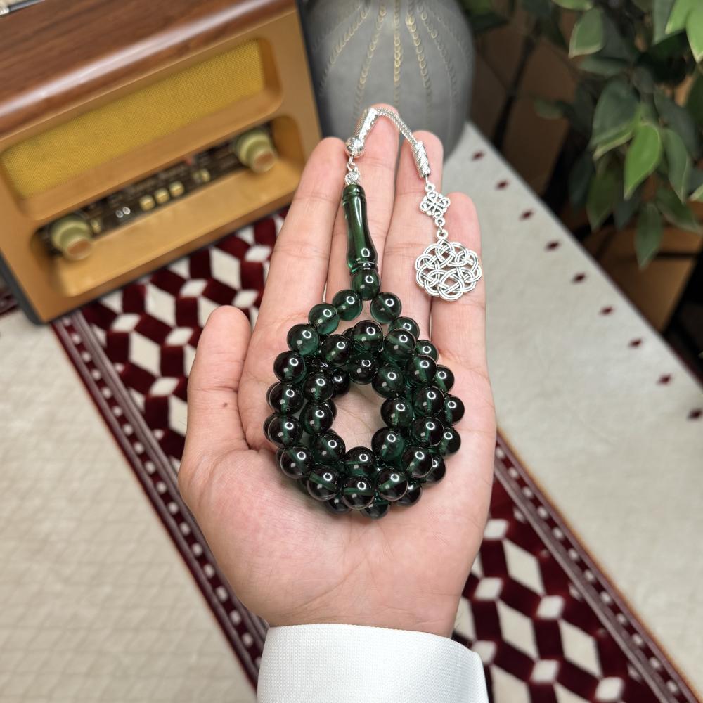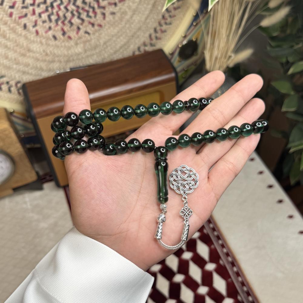 سبحة زعفرانية تتميز بخامة مايسمى بالزعفرانية خفيفة الوزن مصممة للاستخدام اليومي، تتميز بتصميم مريح وأنيق، عليها طربزونة معدنية مما يعطي السبحة جمال وفخامة.