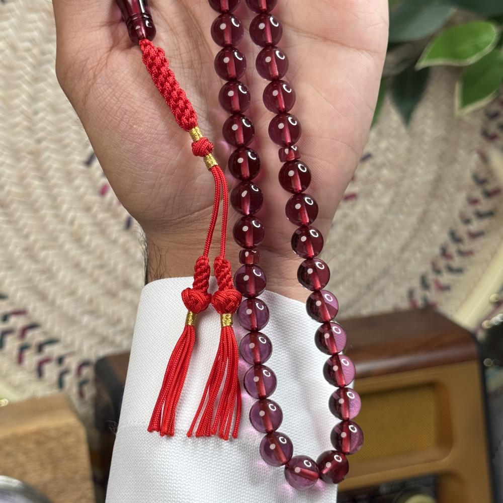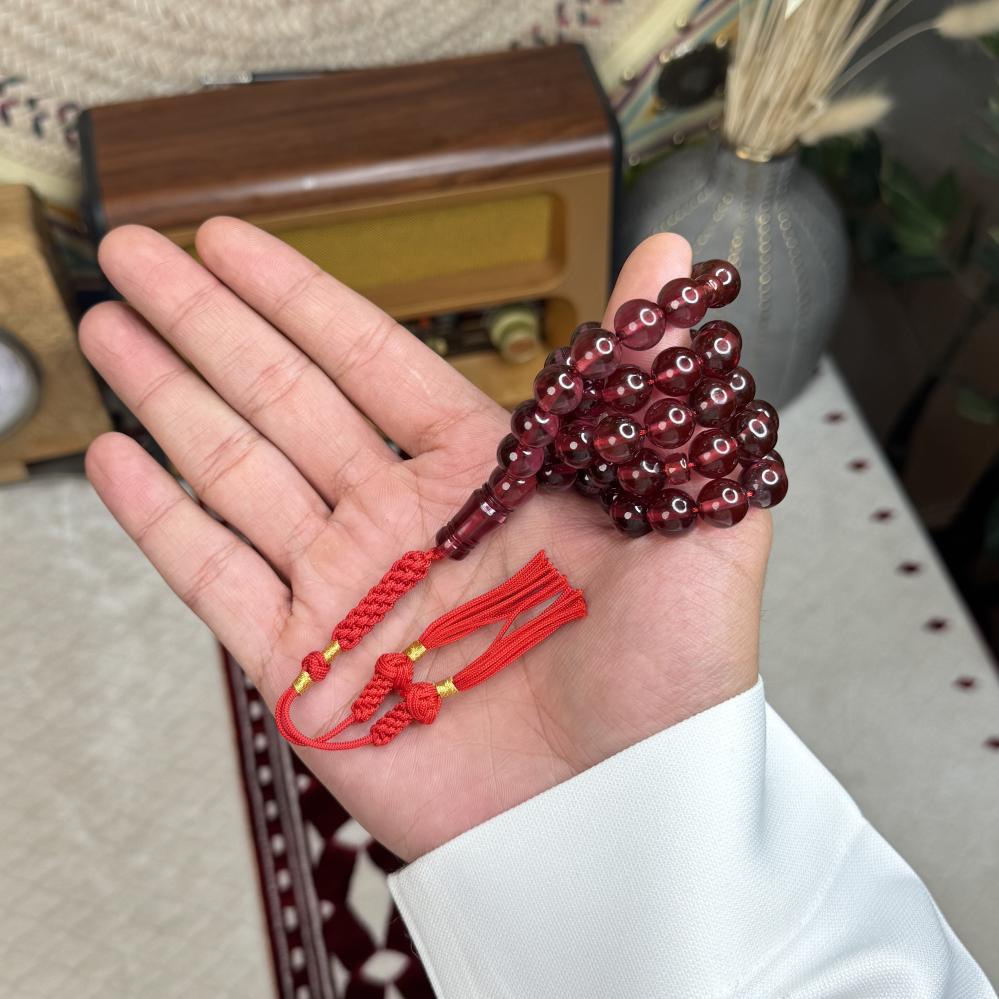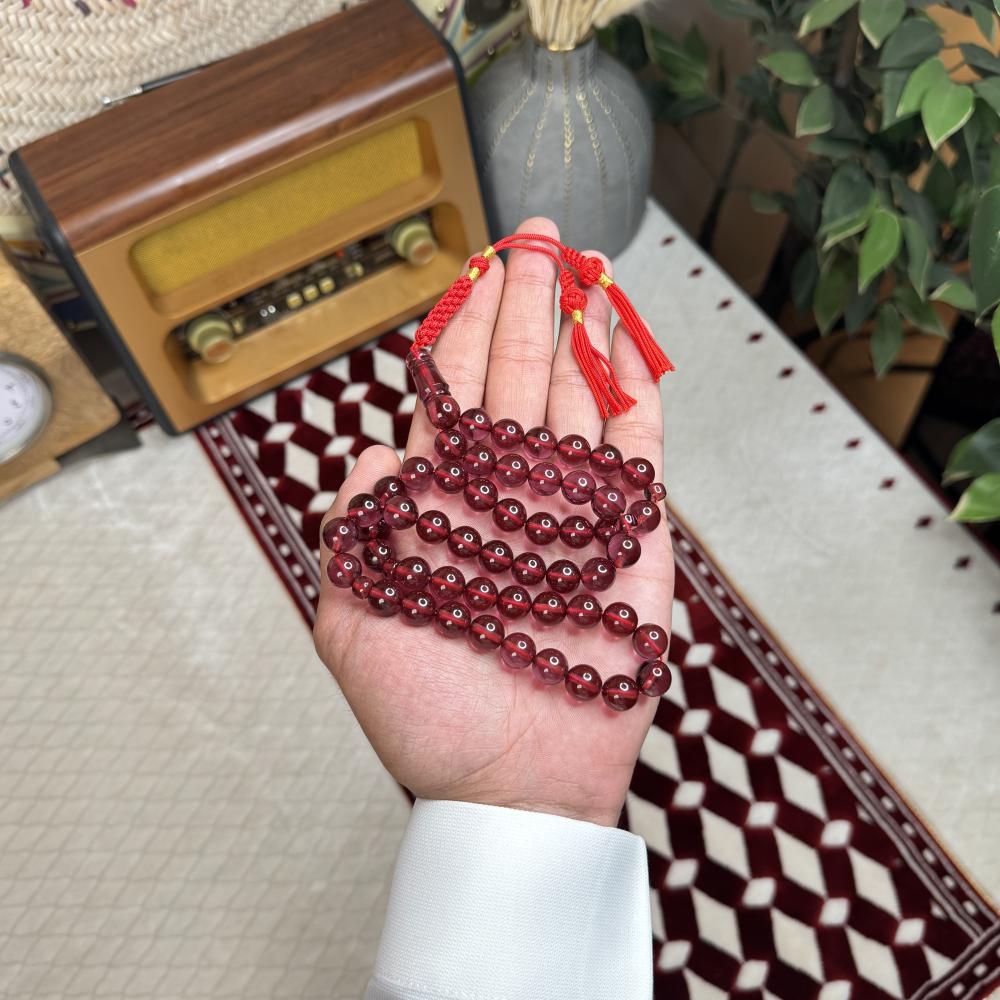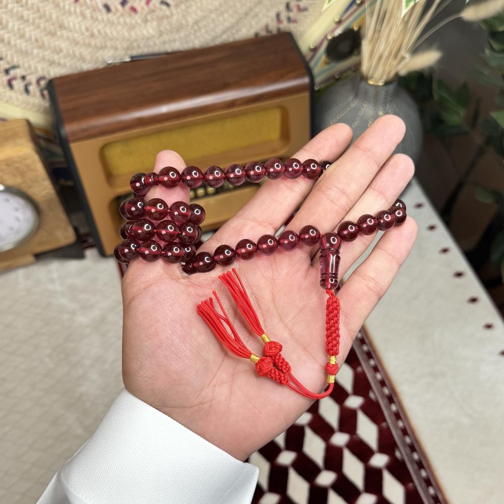 سبحة زعفرانية تتميز بخامة مايسمى بالزعفرانية خفيفة الوزن مصممة للاستخدام اليومي، تتميز بتصميم مريح وأنيق، عليها كركوشة مصنوعة يدوياً مما يعطي السبحة جمال وفخامة.