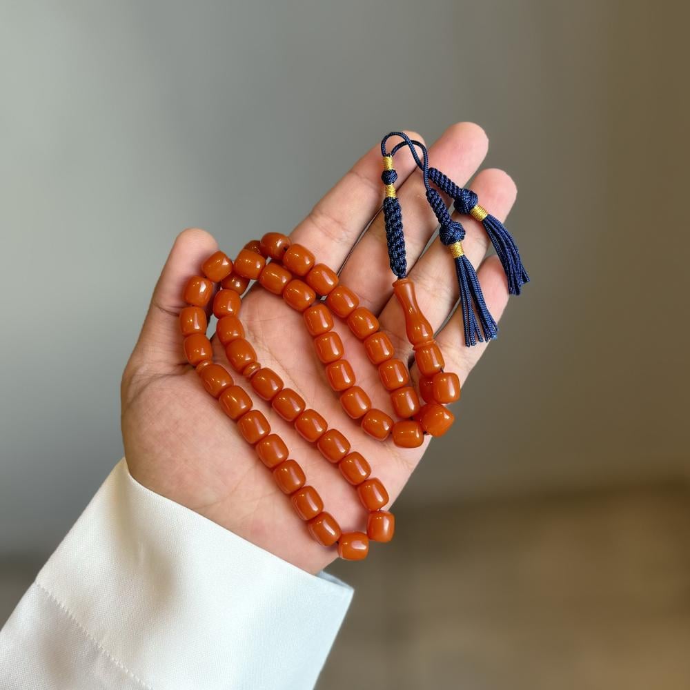 سبحة فاتوران تتميز بخامة مايسمى بالفاتوران خفيفة الوزن مصممة للاستخدام اليومي، تتميز بتصميم مريح وأنيق، عليها كركوشة مصنوعة يدوياً مما يعطي السبحة جمال وفخامة.