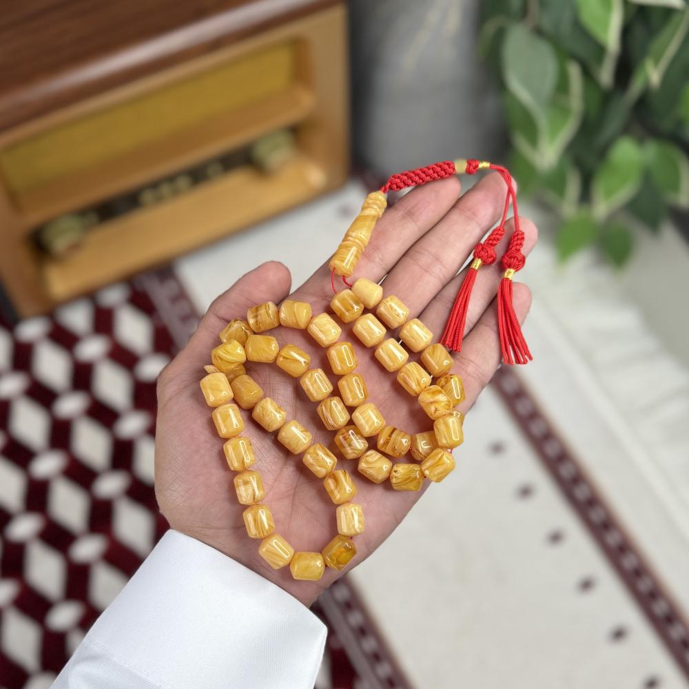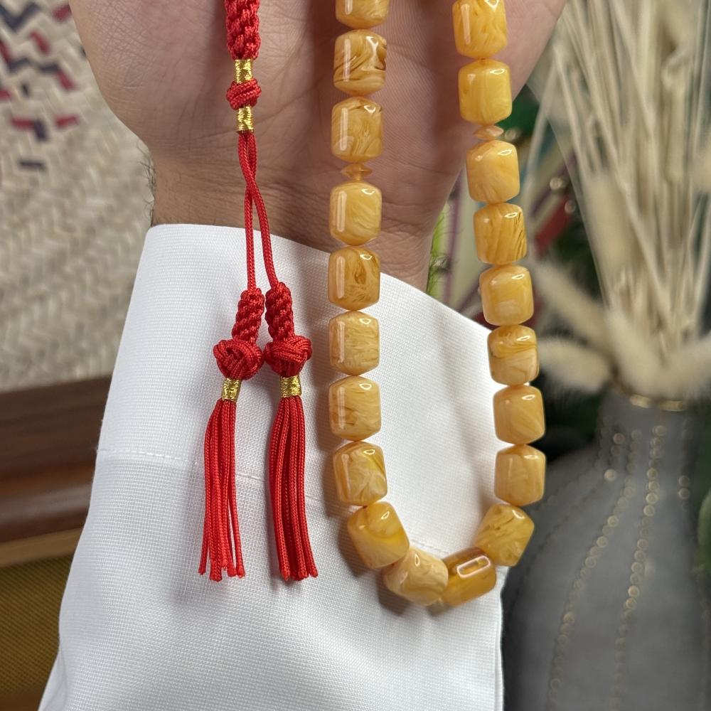 سبحة فاتوران تتميز بخامة مايسمى بالفاتوران خفيفة الوزن مصممة للاستخدام اليومي، تتميز بتصميم مريح وأنيق، عليها كركوشة مصنوعة يدوياً مما يعطي السبحة جمال وفخامة.