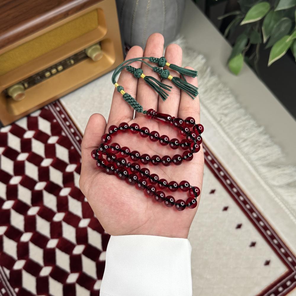 سبحة فاتوران تتميز بخامة مايسمى بالفاتوران خفيفة الوزن مصممة للاستخدام اليومي، تتميز بتصميم مريح وأنيق، عليها كركوشة مصنوعة يدوياً مما يعطي السبحة جمال وفخامة.