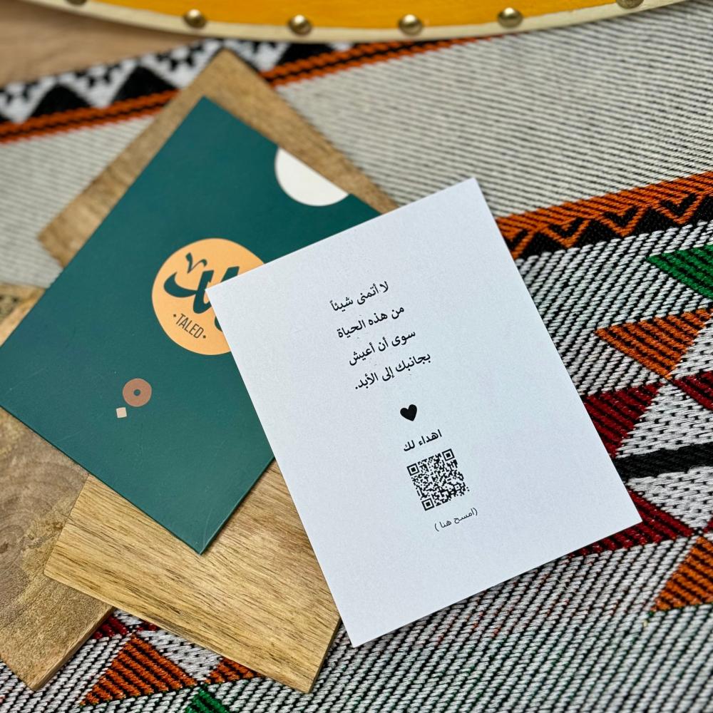 من خلال هذه الخدمة يمكنك كتابة العبارة الذي تريدها على الكرت بما لايزيد عن 30 كلمة ويمكنك اضافة باركود QR كل ماعليك هو تزويدنا برابط المقطع