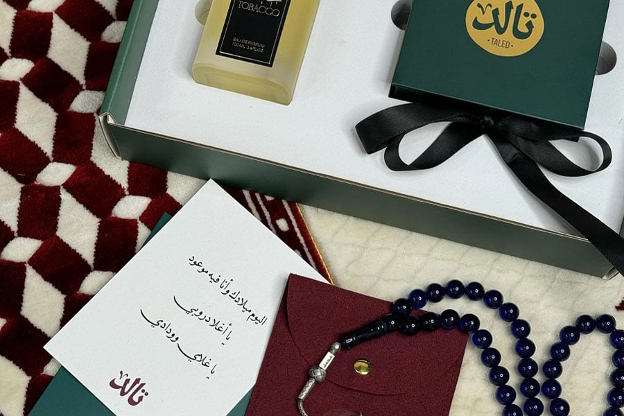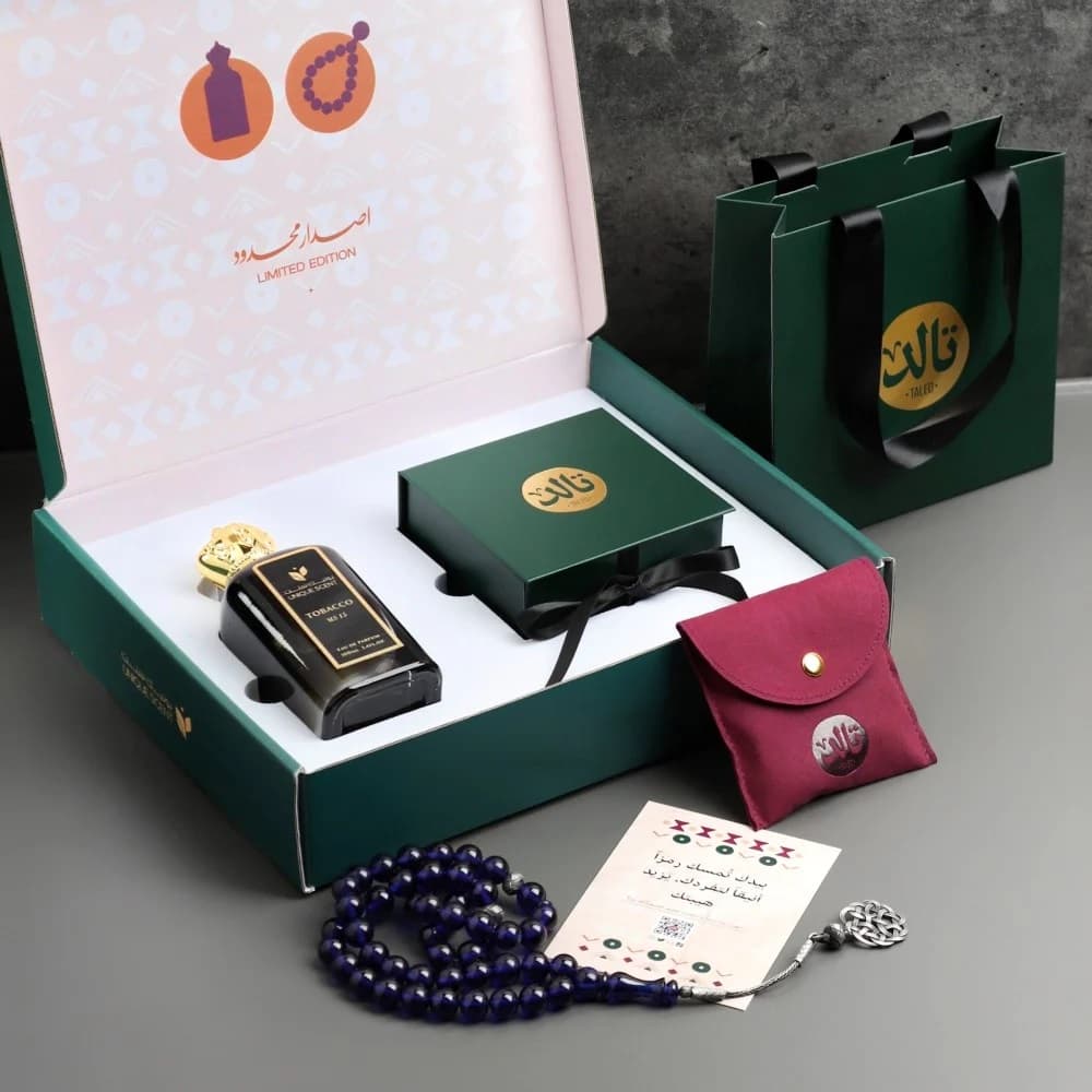 فرحة العيد مع توزيعات تالد غير. اجعل عيدك أكثر تميزًا مع بكج عطور وسبح الفاخر الذي يجمع بين الأناقة والفخامة.